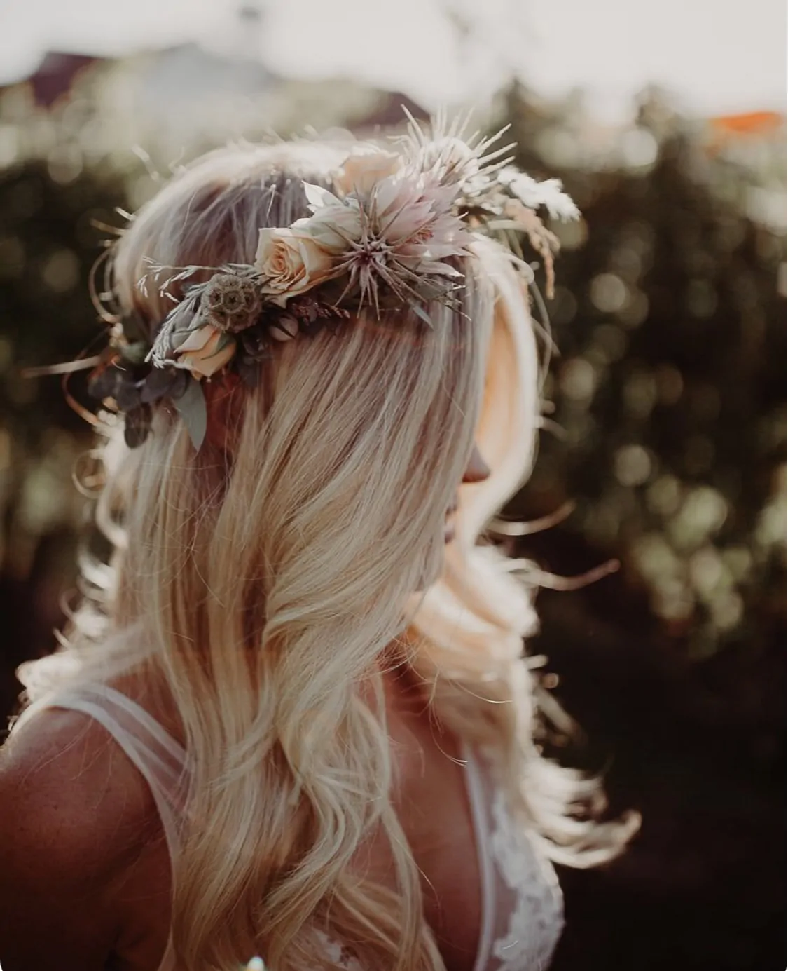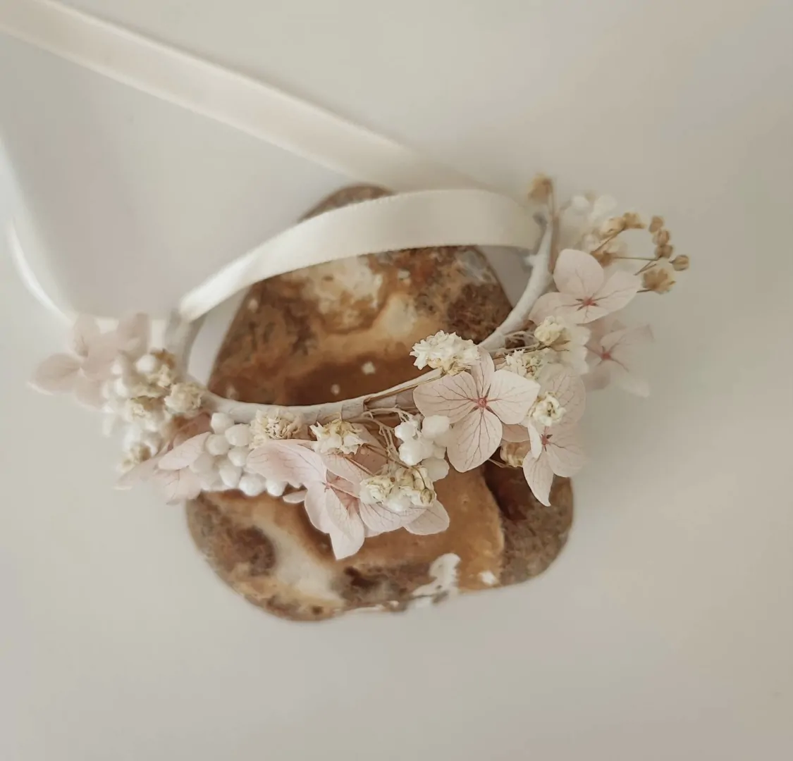 Flower-Crowns für die Haare – wahlweise aus frischen Blumen oder Trockenblumen.