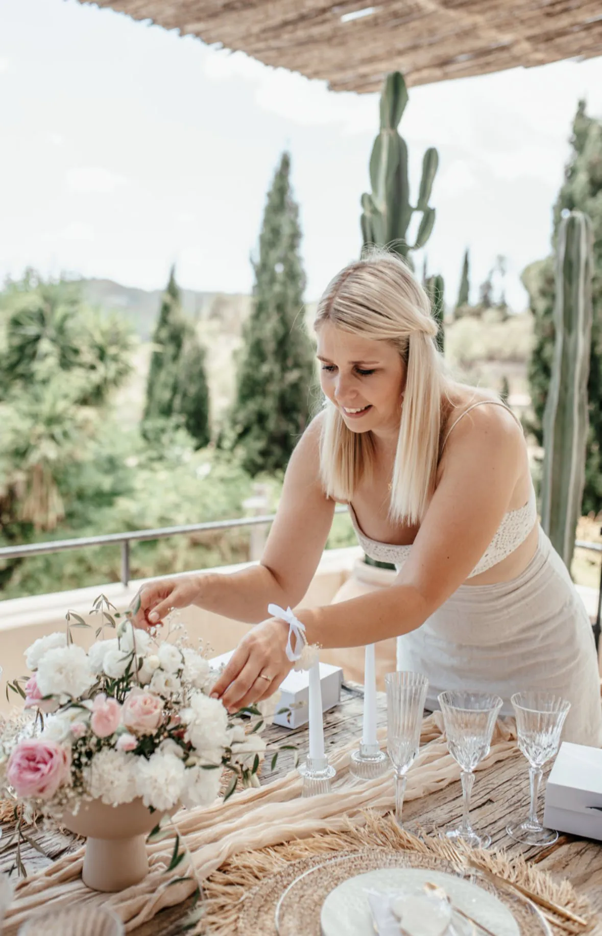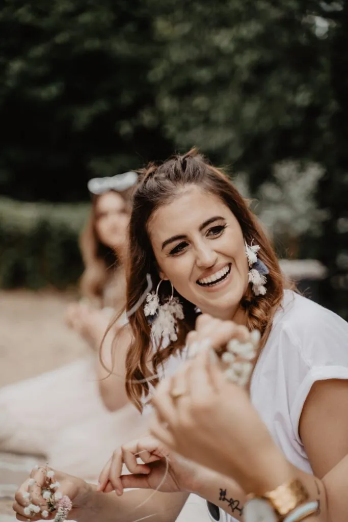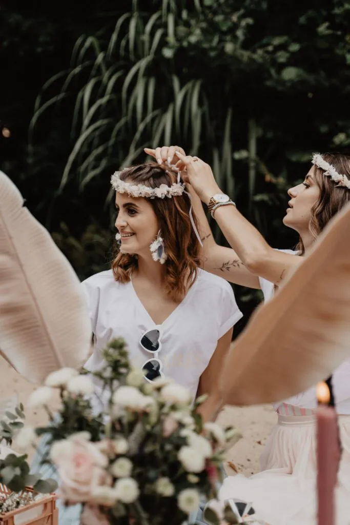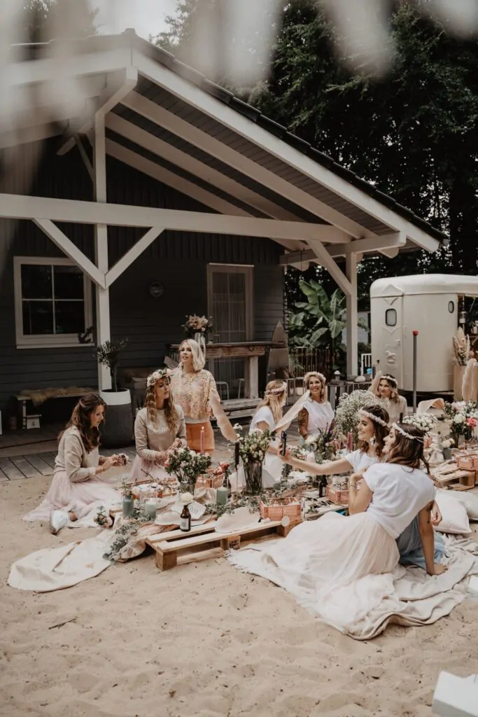 Der perfekte Junggesellenabschied mit deinen Mädels in einer traumhaften Strand-Atmosphäre. Unser kleiner Beach-Club in Schloß Holte stellt ein einzigartiges Ambiente für euren JGA dar – hier kommen richtige Summer-Vibes auf. Parallel dazu befindet sich die Alpaka-Wiese in direkter Nähe. Wir starten mit Sand zwischen den Zehen und Sonne auf der Haut unseren gemeinsamen Blumen-Workshop, in dem ihr traumhafte DIY-Blumenhaarkränze, nachhaltige Gestecke, trendige Flower-Hoops oder stylische Blumen-Armbänder unter unserer Anleitung kreiert.