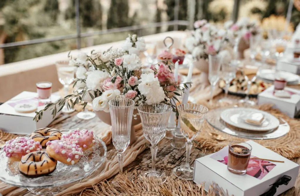 Genießt unsere liebevoll kreierten und exklusiven Picknick-Settings mit blumigen Dekorationen.